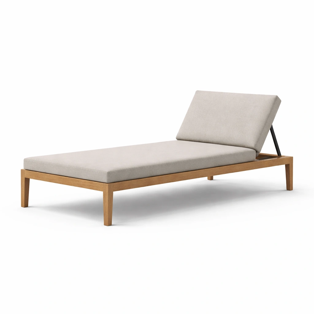 Liegestuhl teakholz mit polyesterpolster beige