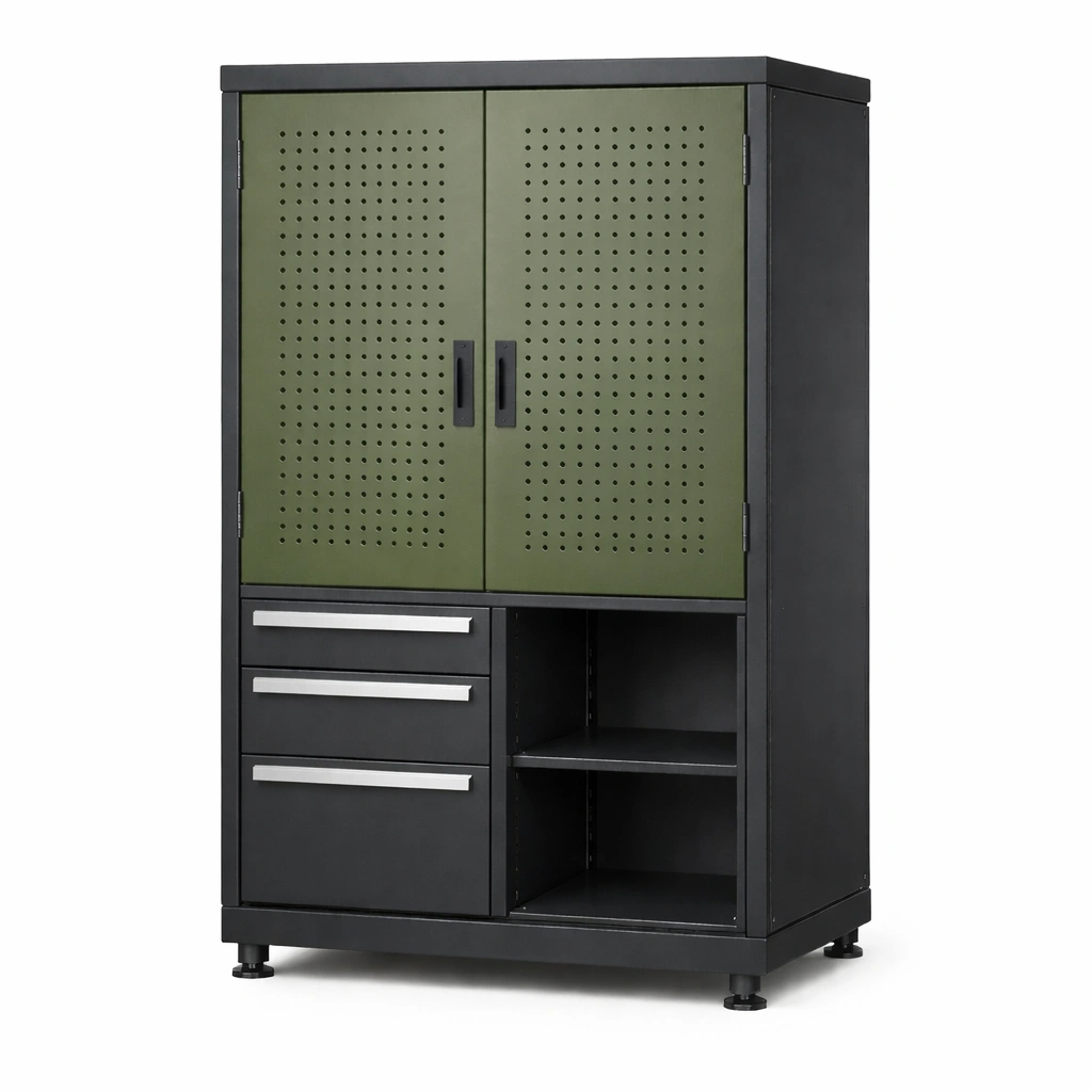 Werkzeugschrank metall mit schubladen und regalen schwarz grün
