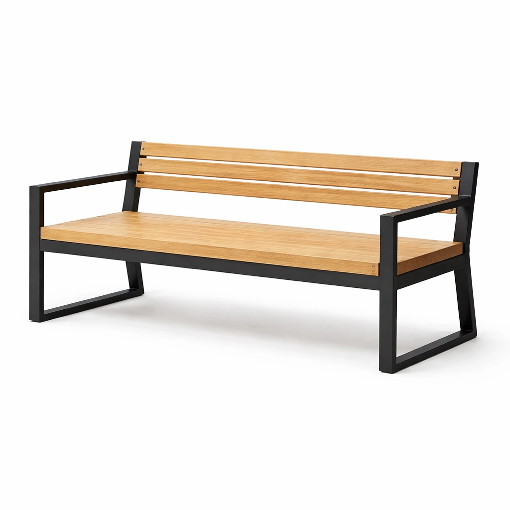 Material: Sitzfläche und Rückenlehne aus Eiche, Gestell aus pulverbeschichtetem Stahl