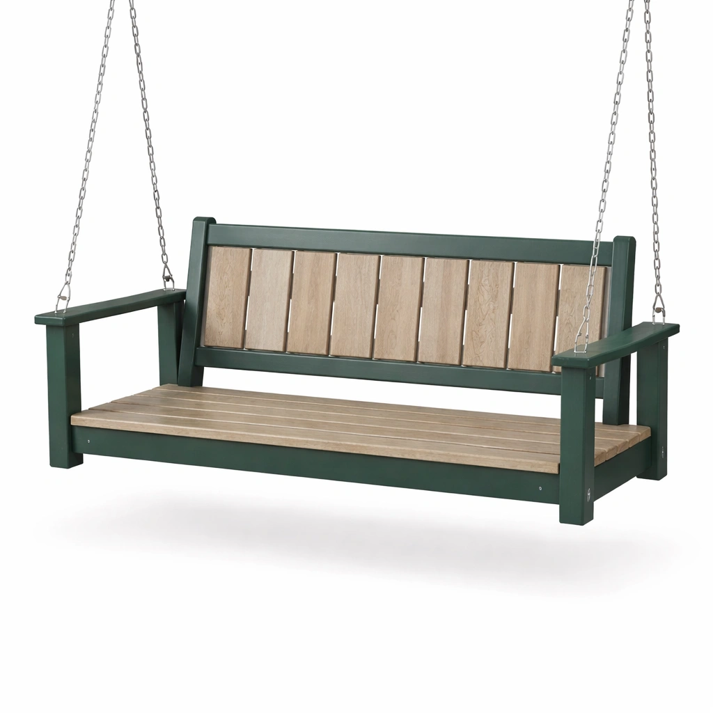 Diese Gartenschaukelbank besteht aus UV-beständigem Polyethylen in Holzoptik. Die Kettenmontage sorgt für eine stabile Aufhängung.
