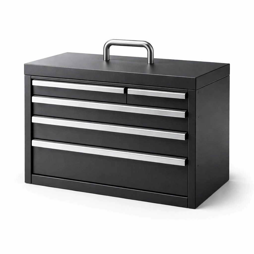 Die Kiste verfügt über 5 Schubladen und einen Verschlussmechanismus ohne Schloss.